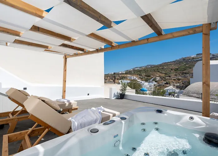 The 1-bedroom Angeleve Villa With Private Jacuzzi Fira is located around a 25-minute walk from the Castelli of Pyrgos and invites guests to enjoy a terrace.